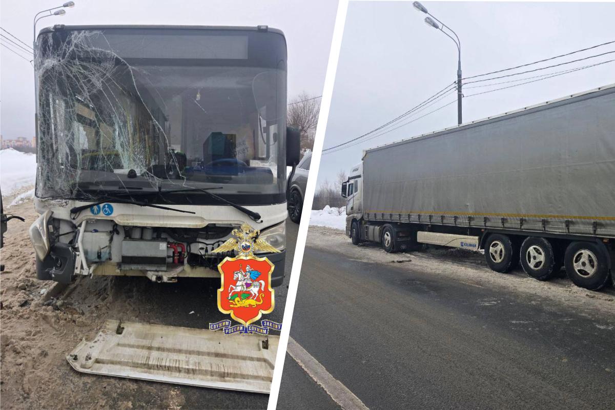 Авария с участием пассажирского автобуса и грузовой фуры в Электростали, в результате которой пострадали три человека