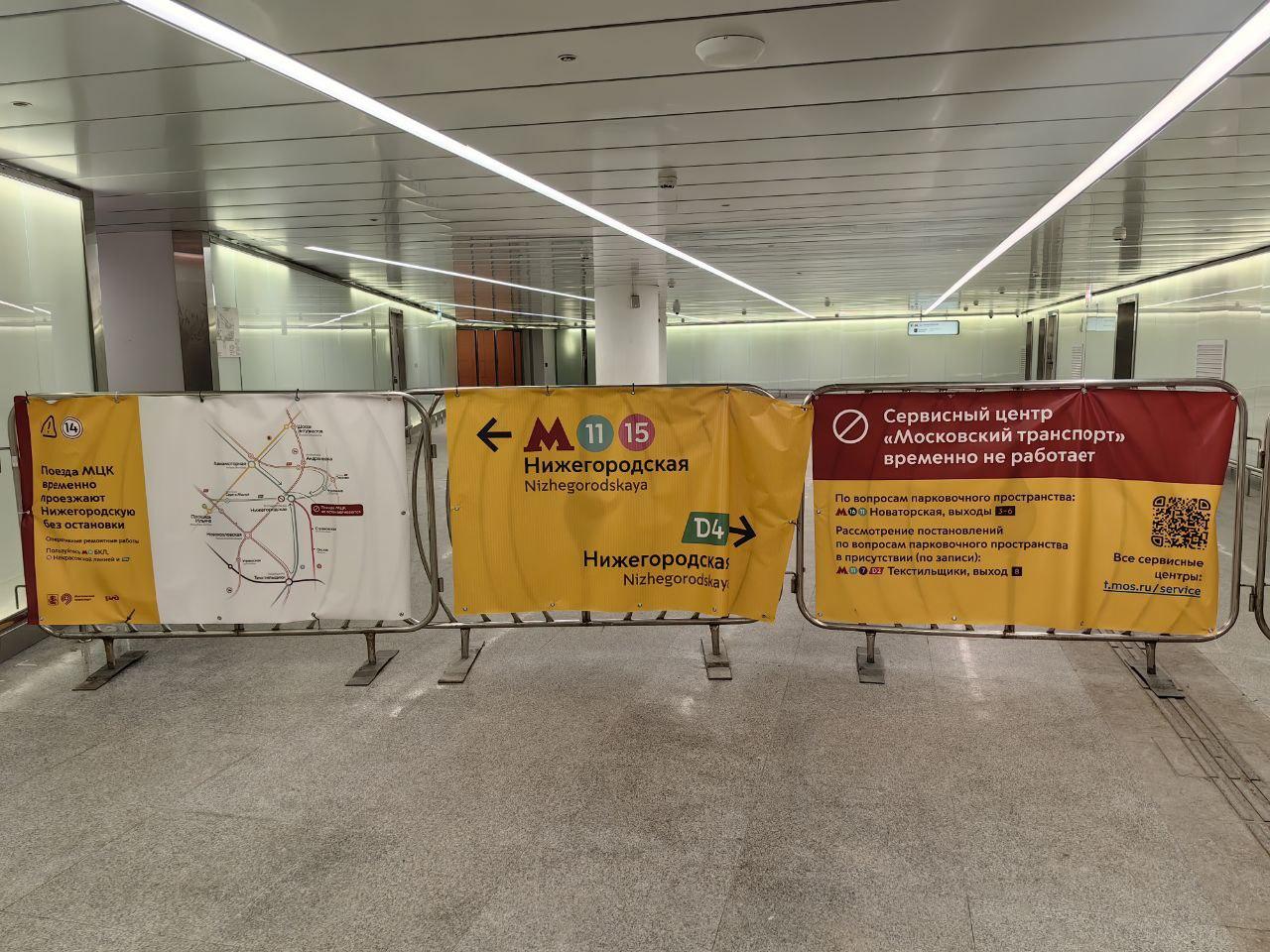 Информационные таблички сообщают о закрытии станции «Нижегородская»