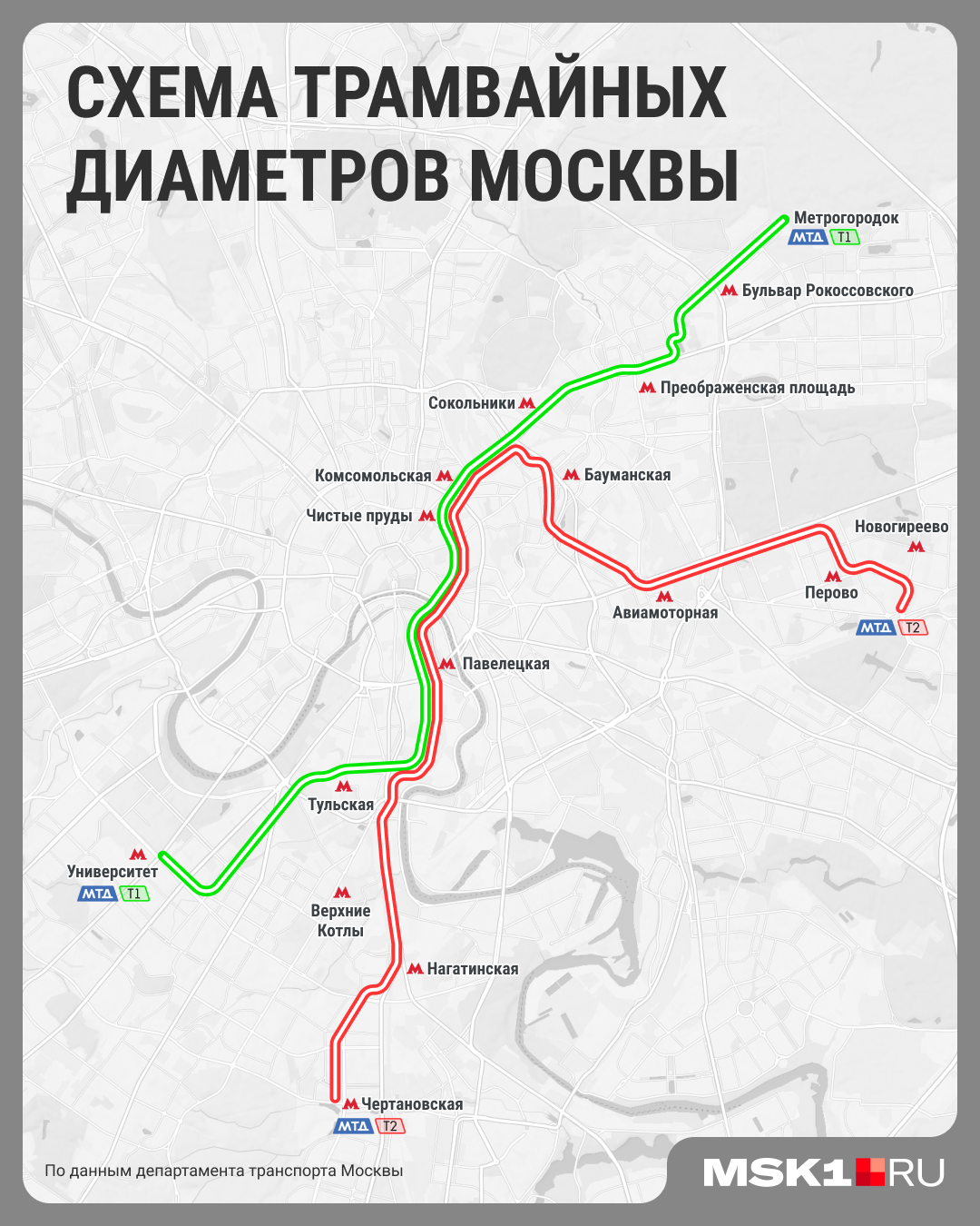Мэр Москвы Сергей Собянин объявил о планах запуска второго трамвайного диаметра (Т2). Маршрут протяженностью 33 километра свяжет станцию метро «Чертановская» со станцией МЦД «Новогиреево». Открытие запланировано на 2026 год.