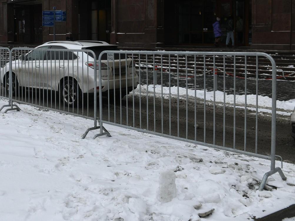 В центре города, на площади Никитские ворота, установлены металлические ограждения.